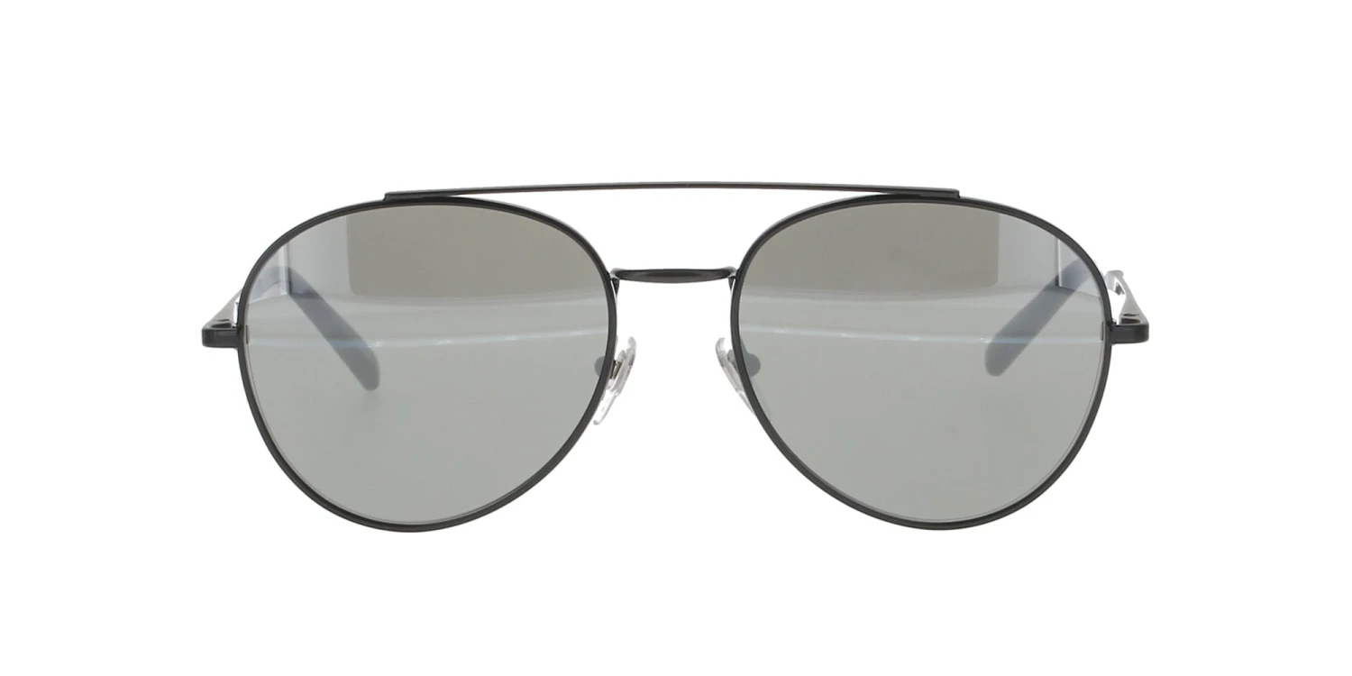 A matte black frame with a smoke mirror. This frame has a double bridge and adjustable nosepads. Brand name subtly engraved on both temples