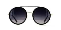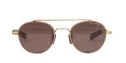 A gold metal frame with a double bridge and brown gradient lenses. Adjustable nosepads for comfort.